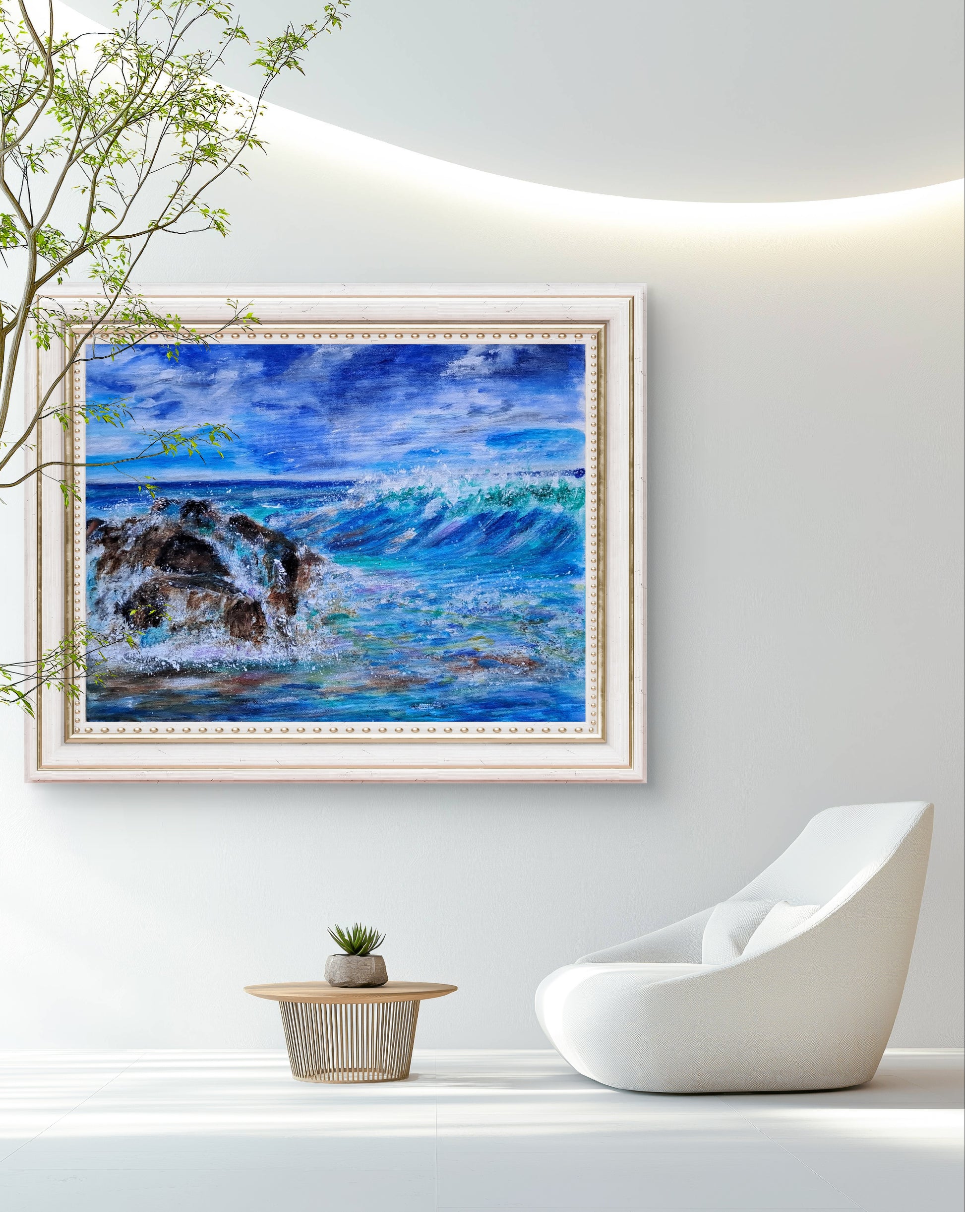 "This painting was inspired by a morning walk on the coast. The waves were wild and alive--just like how I felt starting something new. Have you ever had a moment like that where the sea mirrored your soul? This crashing wave reminded me of resilience - the way we keep rising no matter what."