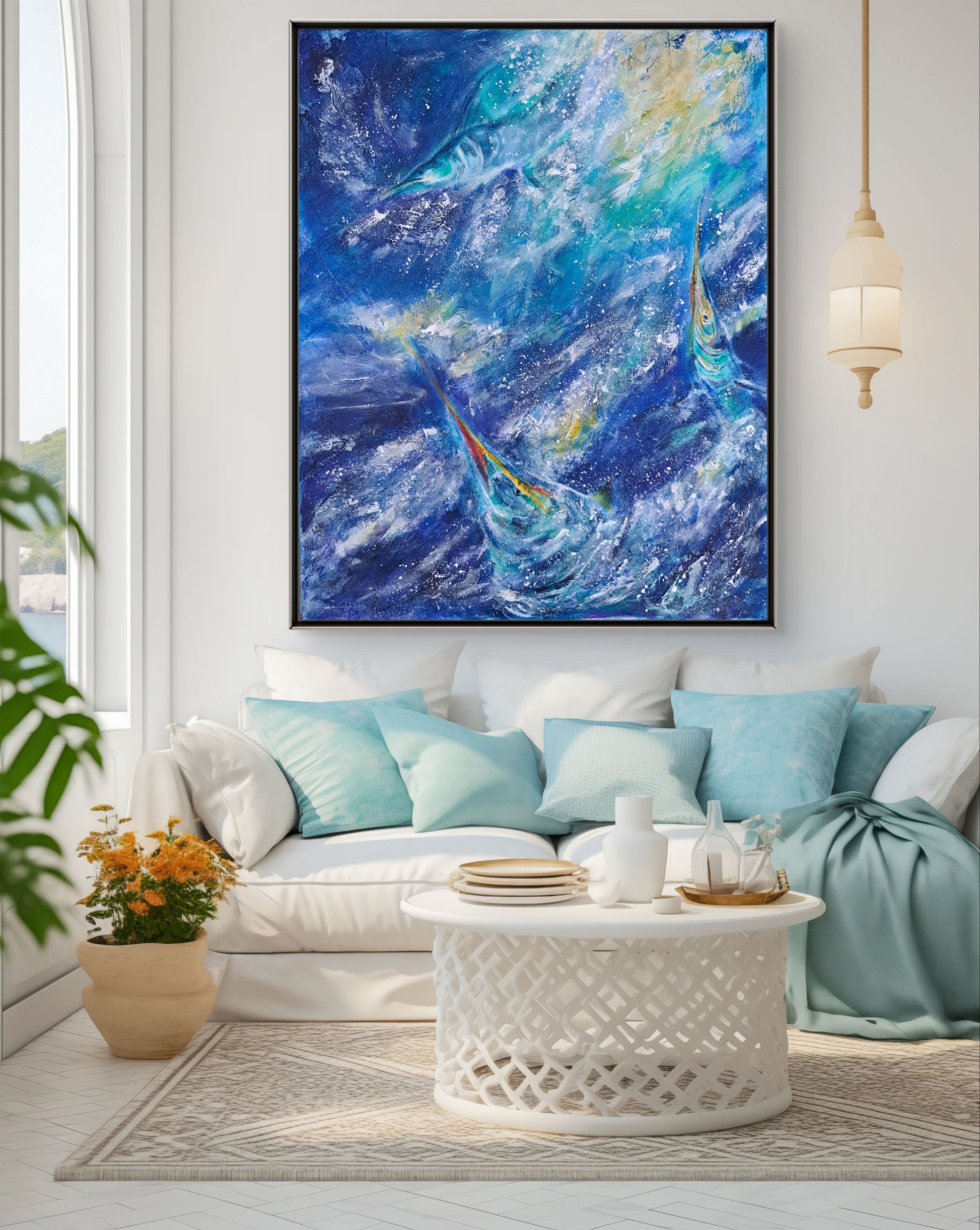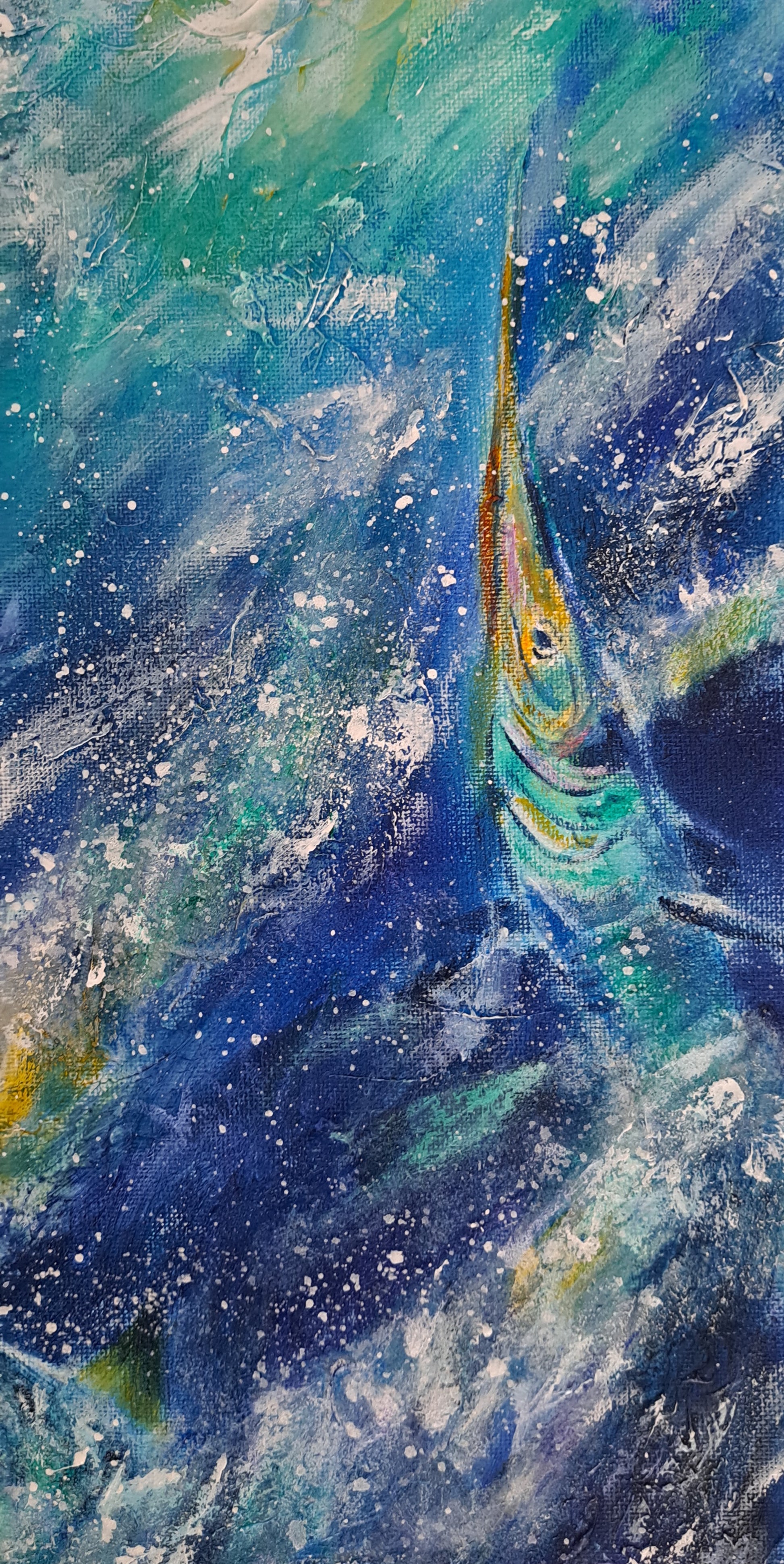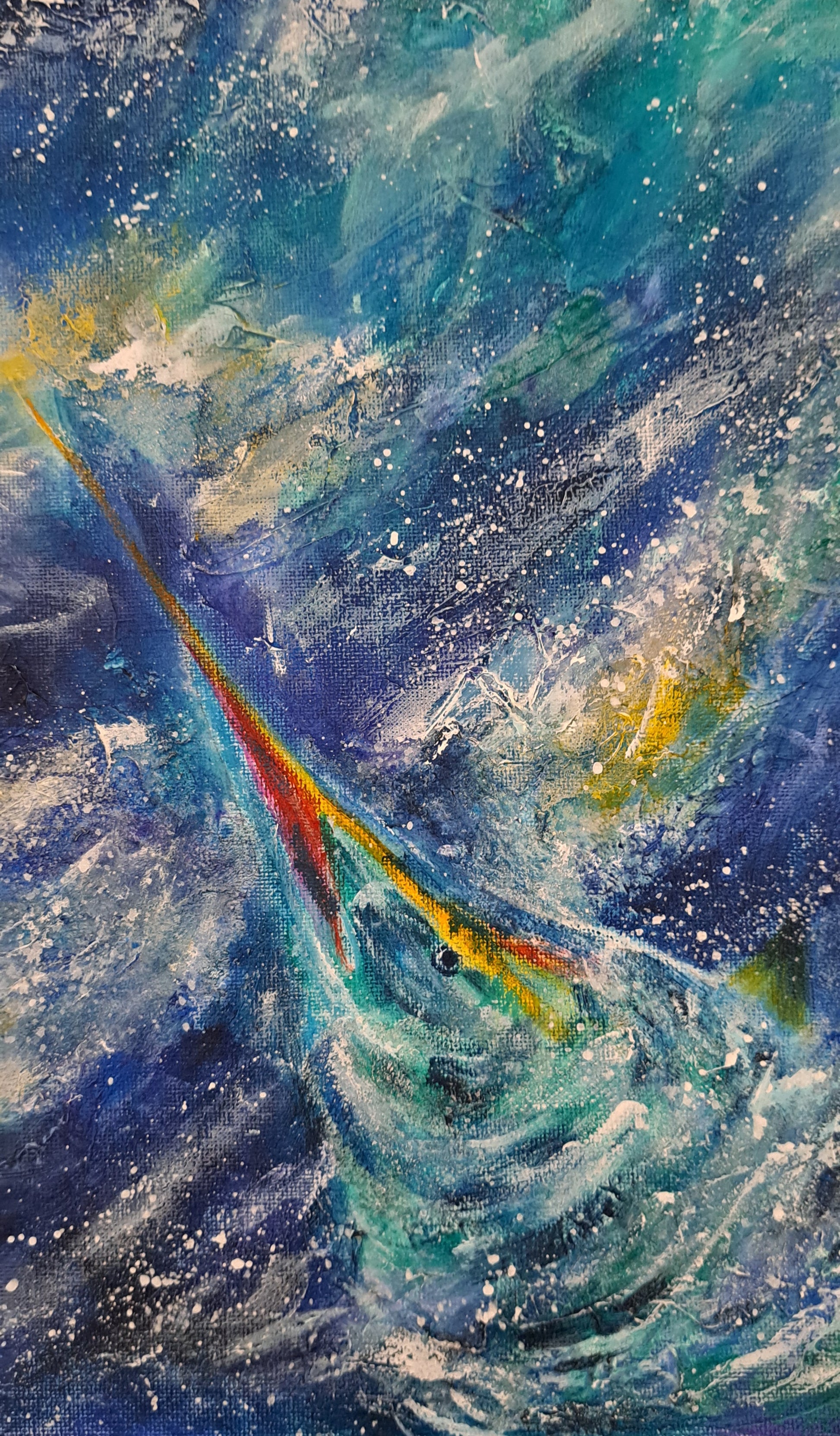 Slicing through the water like lightning, the marlin is built for the chase---swift, powerful, and unstoppable. When I painted this piece, I wanted to freeze that split second of raw energy, the ocean's athlete at its peak. To me, this marlin isn't just a fish--- it's a symbol of ambition, determination, and the thrill of chasing something greater. For anyone who knows the pull of the sea or the chase, this painting carries that same fire.