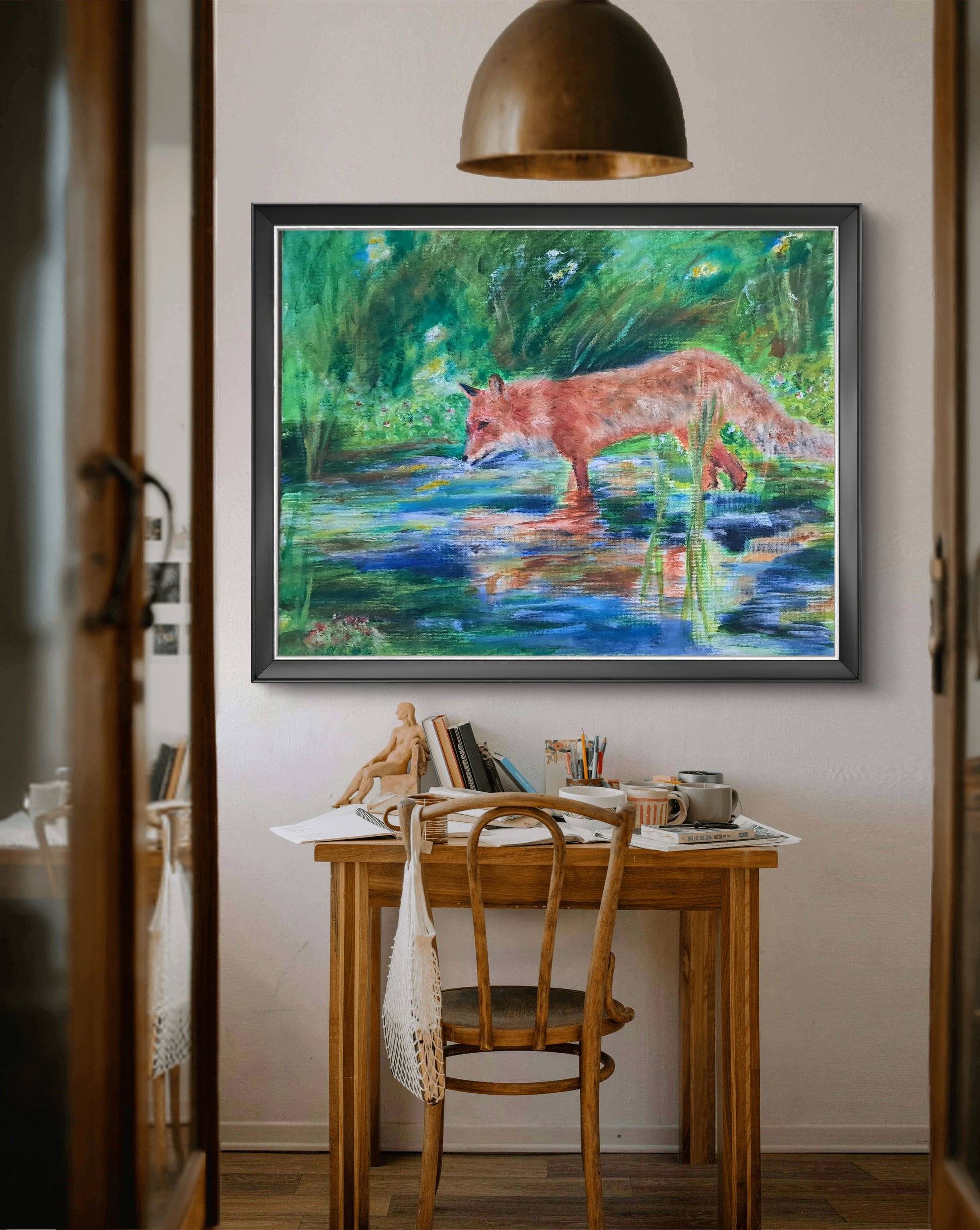 Bring the peaceful wilderness home with this original fox painting.